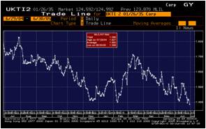One wonders whether Schrödinger’s Cat process is at work in the world of interest rates and inflation. Eighteen months ago, the real yield was at 2.17% (December 2003, since you ask). Practically no one knew or cared. Trustee meetings came and went – the performance of FTSE and the state of the bond markets were extensively discussed – but the real yield (on the 2% 2035 index linked gilt) wasn’t even on the agenda. Pension funds owned homeopathic amounts of it – so why worry about the yield? Thus, for the most part, it got shut in a box, the lid only lifted once every three years – which obviously wasn’t enough to do any harm.